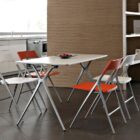 Trabajamos en casa, vivimos en la oficina. El espacio se transforma y condiciona nuestra relación con los objetos. PLEK reinventa el concepto clásico del mobiliario plegable. Una colección nómada, sensual y polivalente de sillas y mesas plegables o fijas. Una solución dinámica y práctica, de uso tanto en colectividades como en el entorno del hábitat.