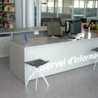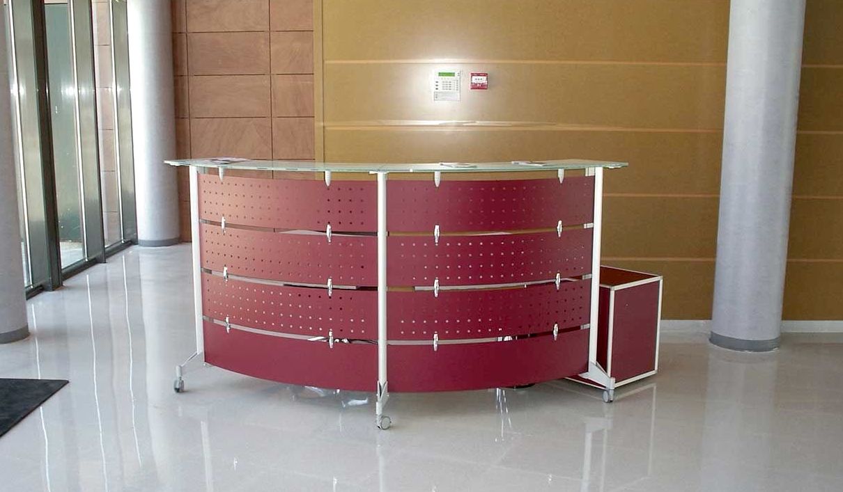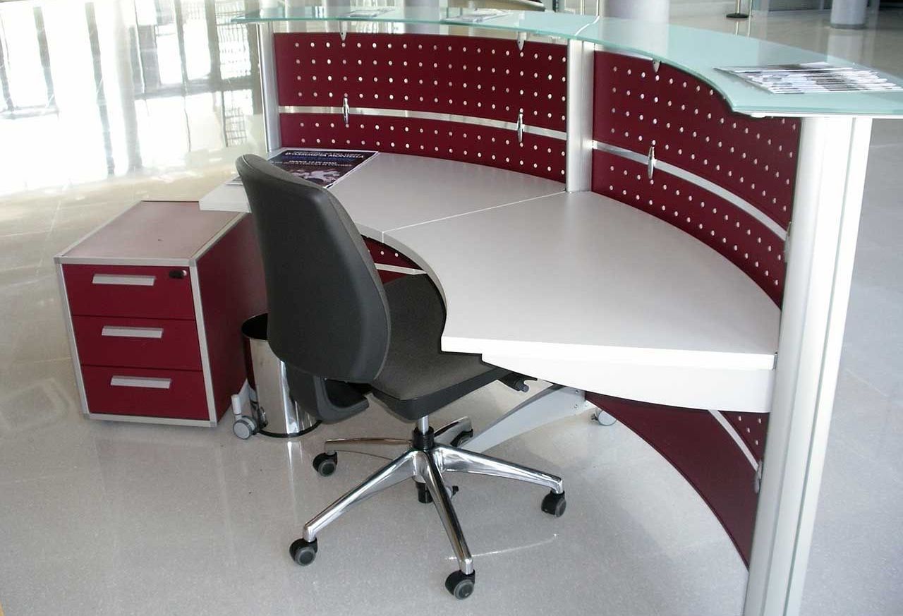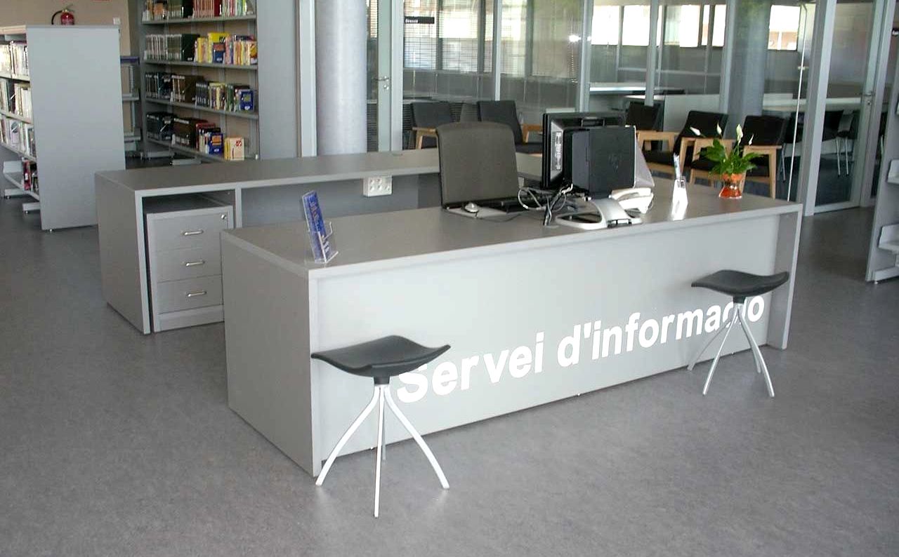 Mostradores realizados a medida según prescripción de proyecto técnico mediante corte y ensamblado de tableros con la posibilidad de adoptar diversas disposiciones que incluyen plano de trabajo, bandeja de atención al público y área adaptada para discapacitados según normativa.
