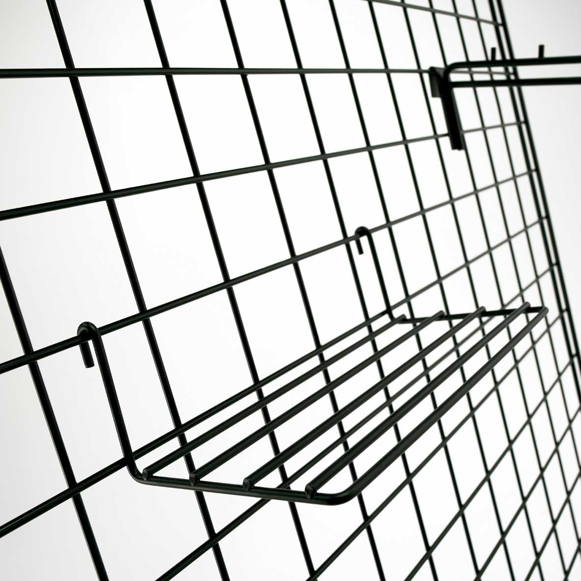 Paneles rejilla metálicos de color negro, construidos con varilla de hierro de 0,5 cm. formando una malla de 7 cm.