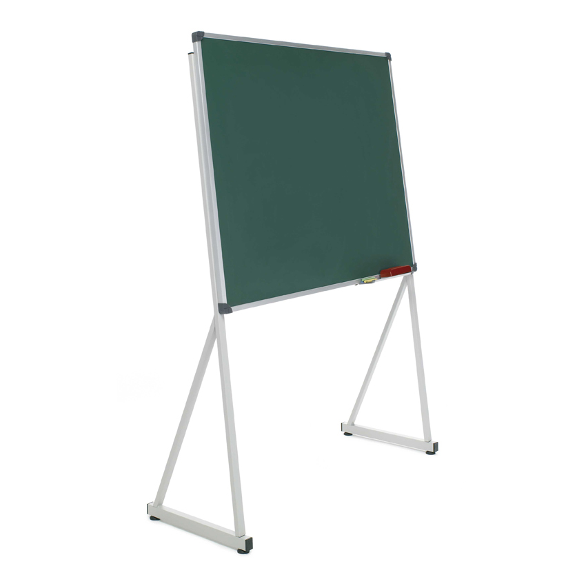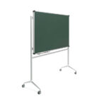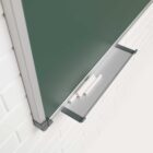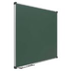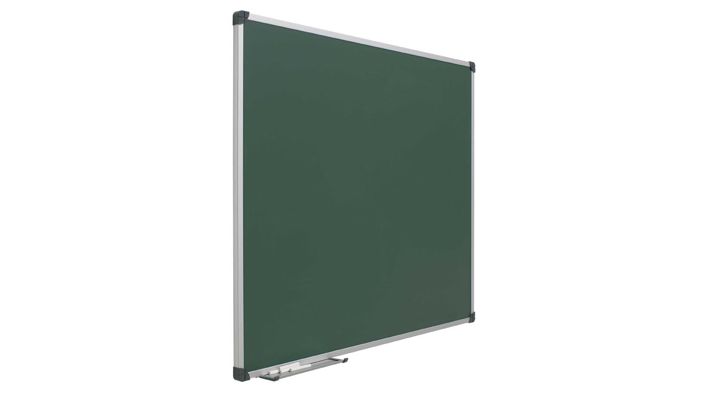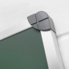 Pizarra mural verde enmarcada con perfil de aluminio anodizado en color plata mate y cantoneras redondeadas de plástico gris.