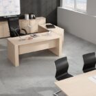 Tablero de partículas de madera de formación en tres capas, aglomerado con resinas sintéticas mediante prensado plano a alta temperatura y lijado. Densidad 630 Kg/m3 Recubierto con papel decorativo impregnado de melamina. (Espesores: 30 mm).