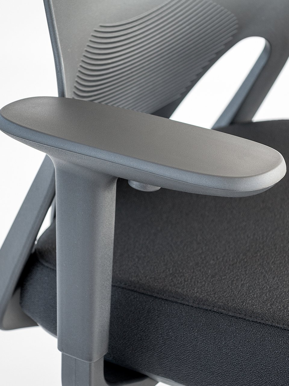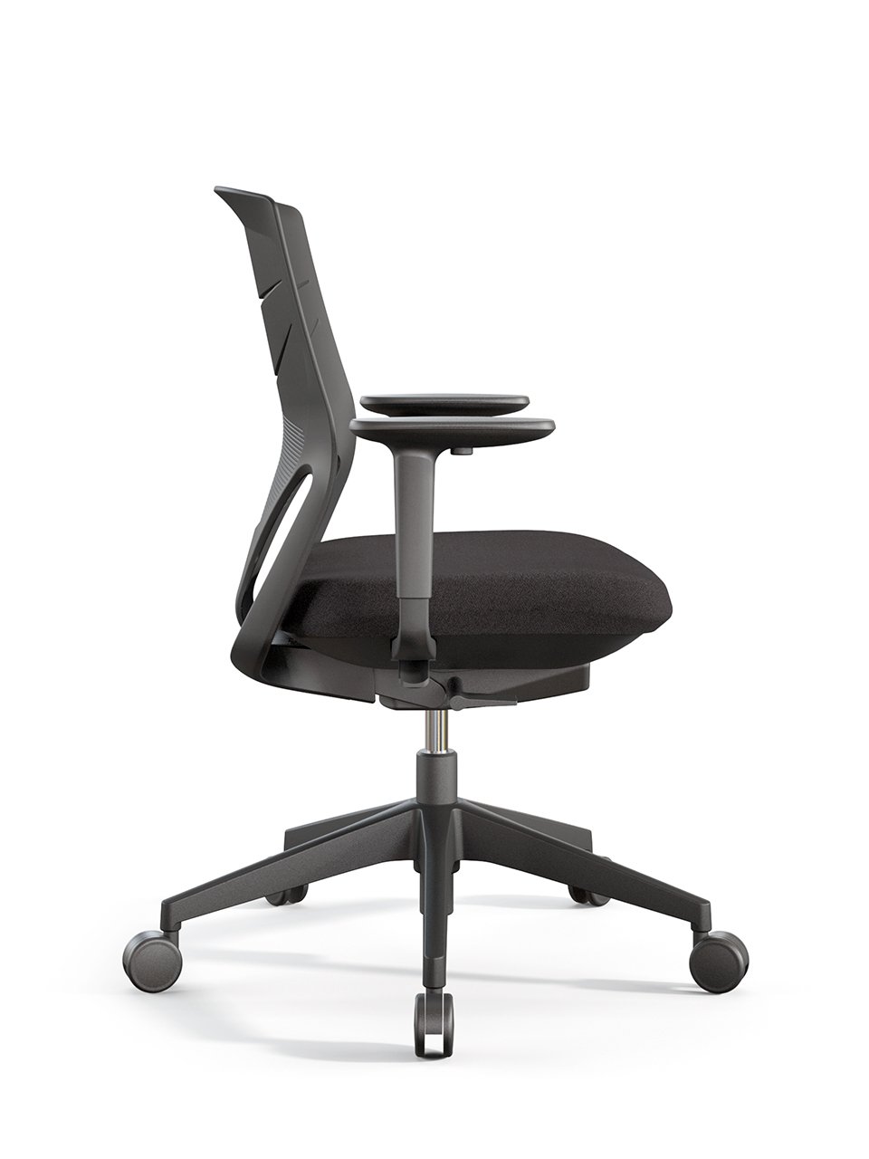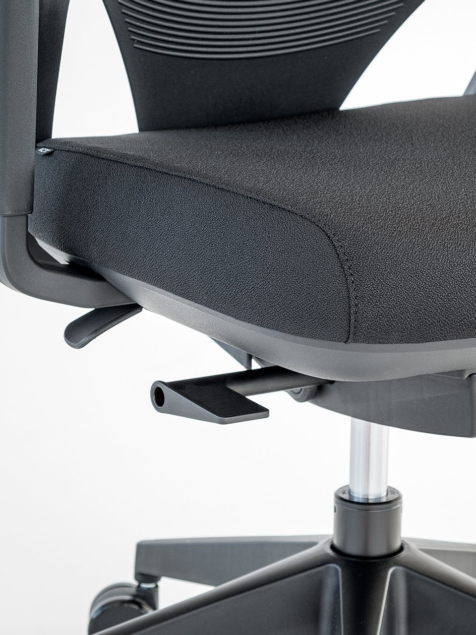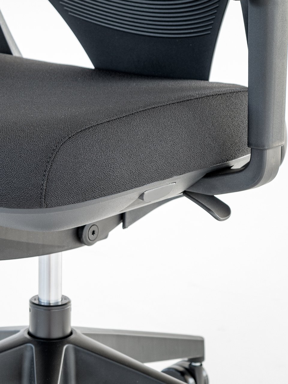 El innovador diseño del respaldo, fabricado en polipropileno y fibra de vidrio, permite una adaptabilidad al movimiento del usuario, complementado con el ajuste automático del refuerzo lumbar incorporado, que aporta un alto grado de confort.