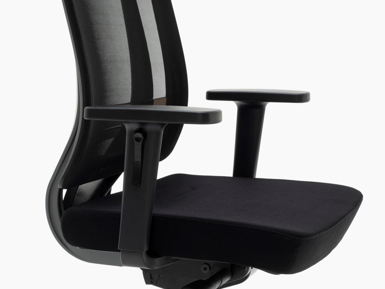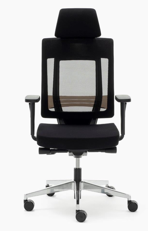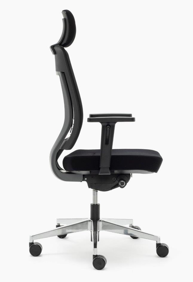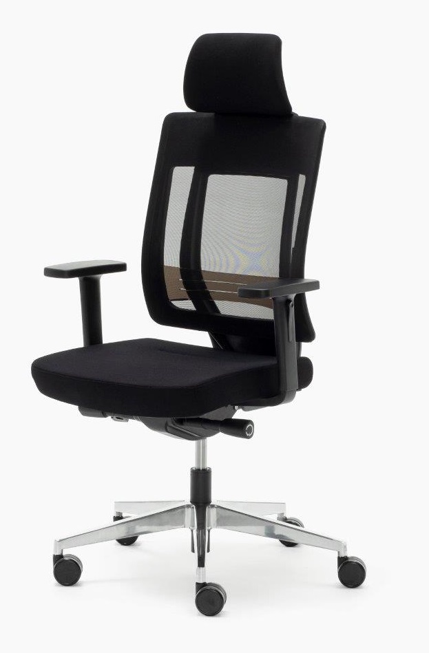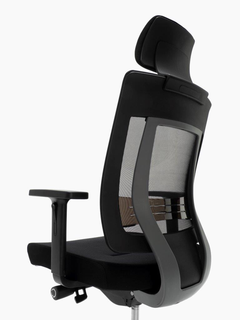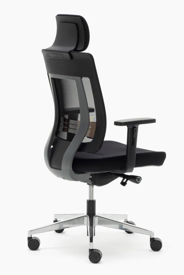 SISTEMA SINCRO CON RESPALDO DE MALLA TÉCNICA NEGRA, BRAZOS REGULABLES 3D. BASE ALUMINIO, TRASLACION EN ASIENTO, TENSOR LUMBAR Y CABECERO. Color: Negra