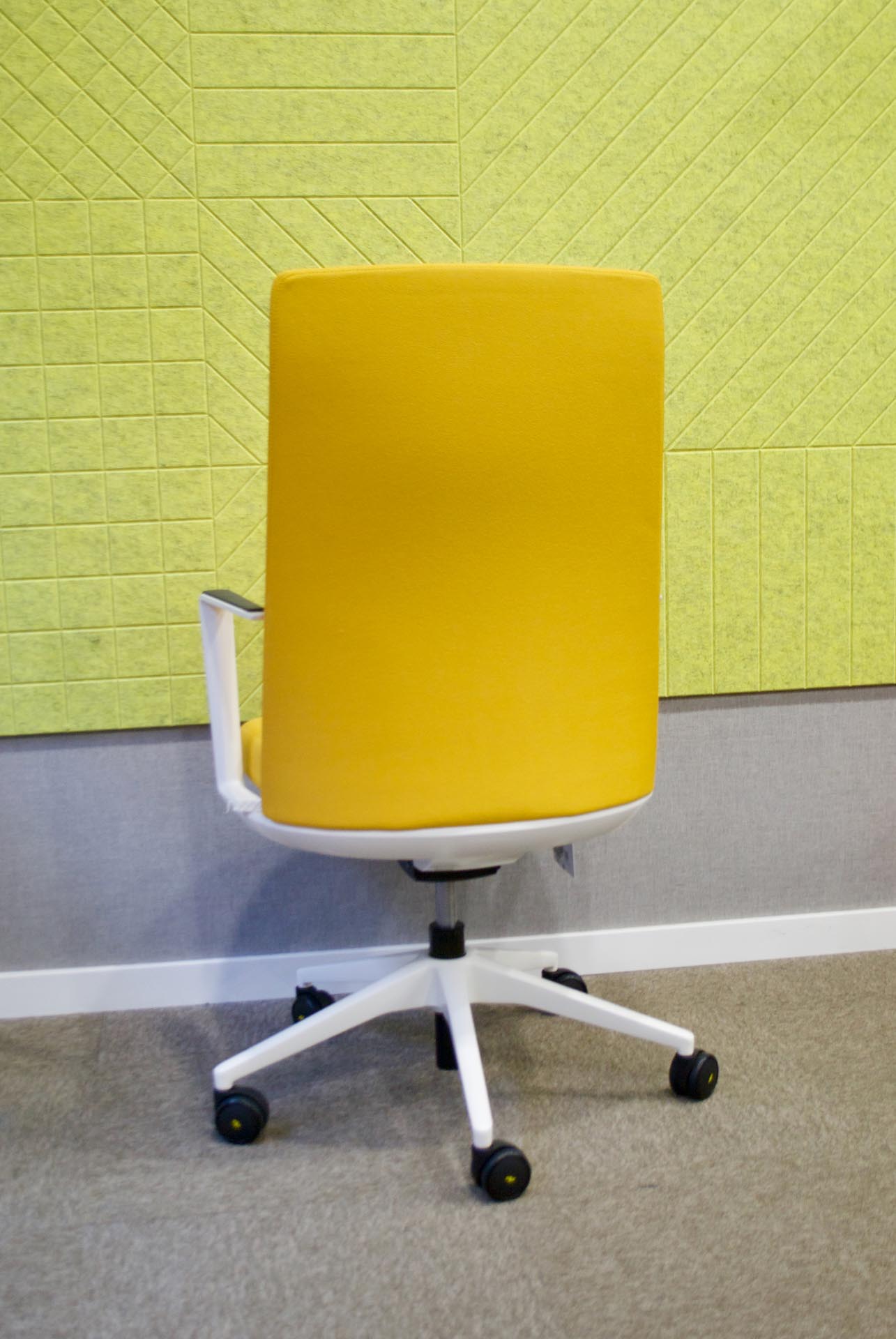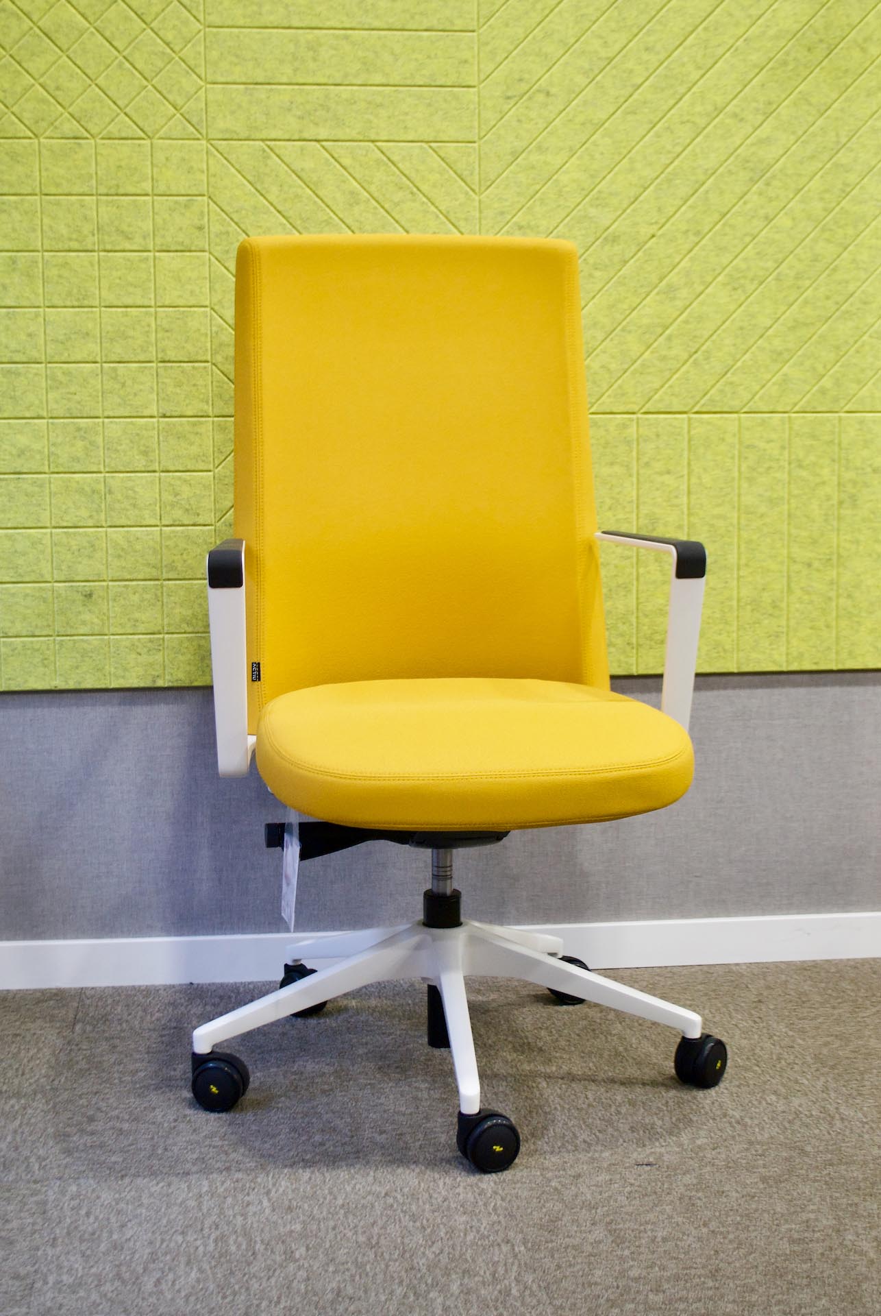 Respaldo algo, con brazos, SINCRO, tapizado amarillo T91.