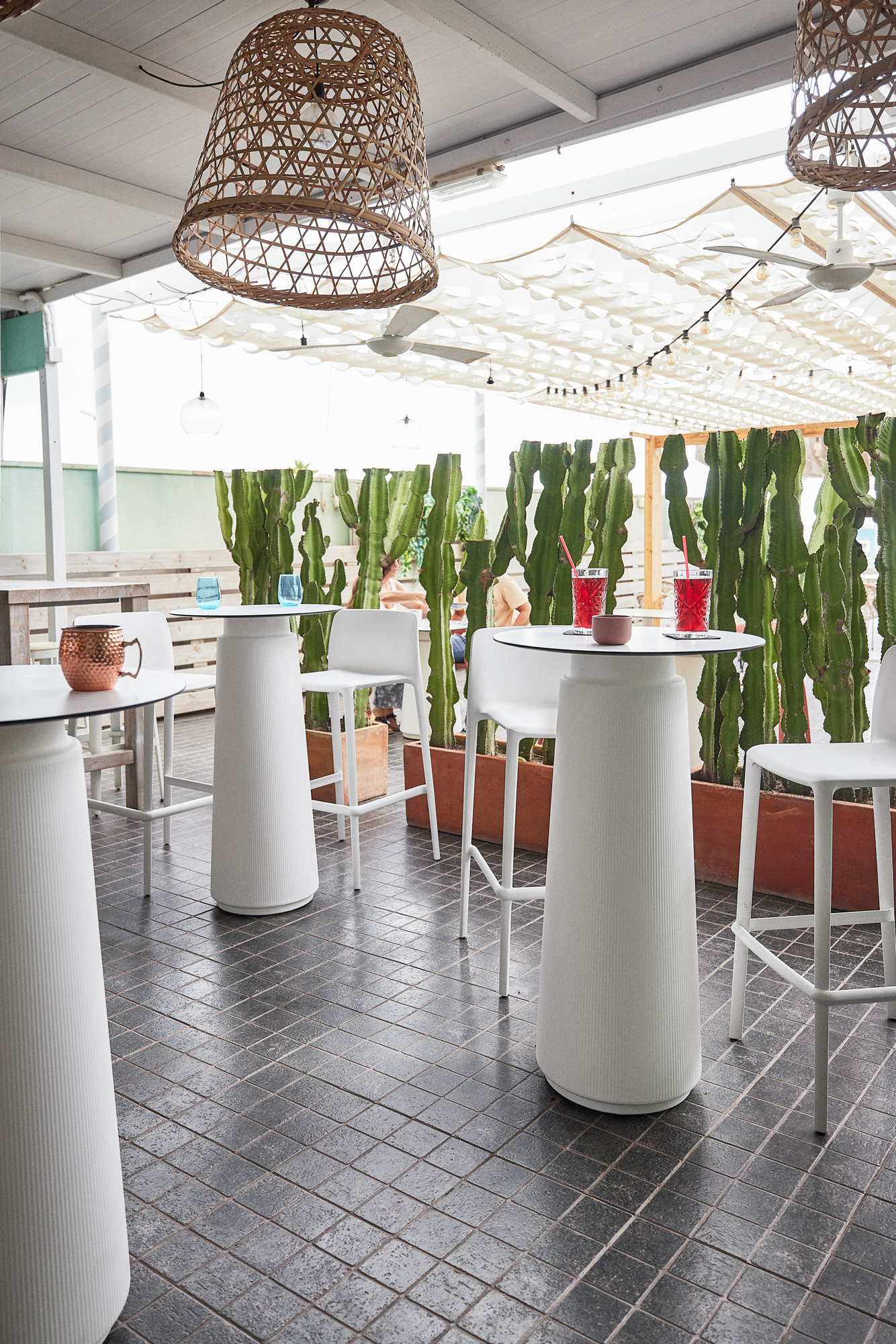 Taburete Fluit de polipropileno con fibra de vidrio. Sostenible y ligero.