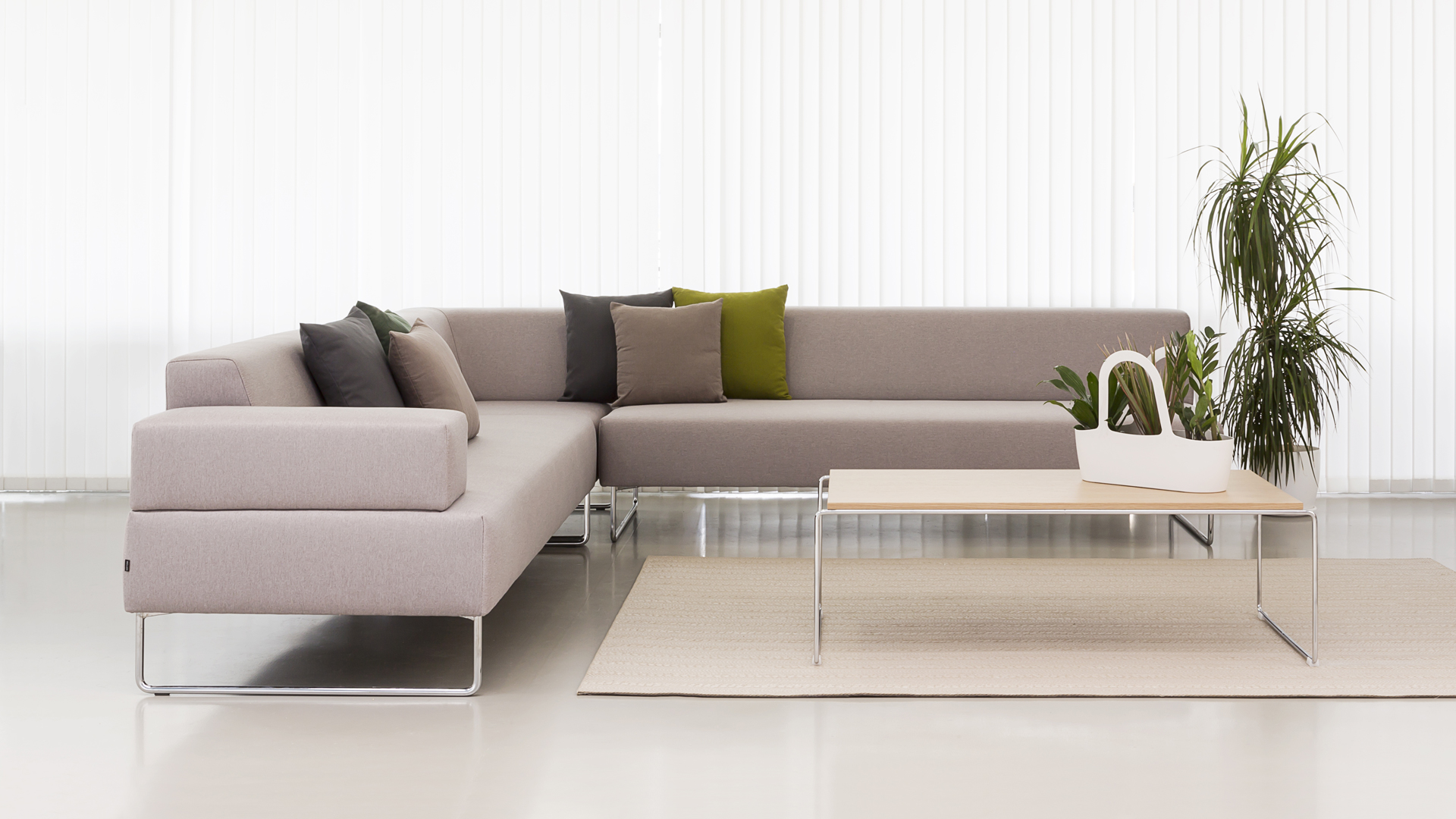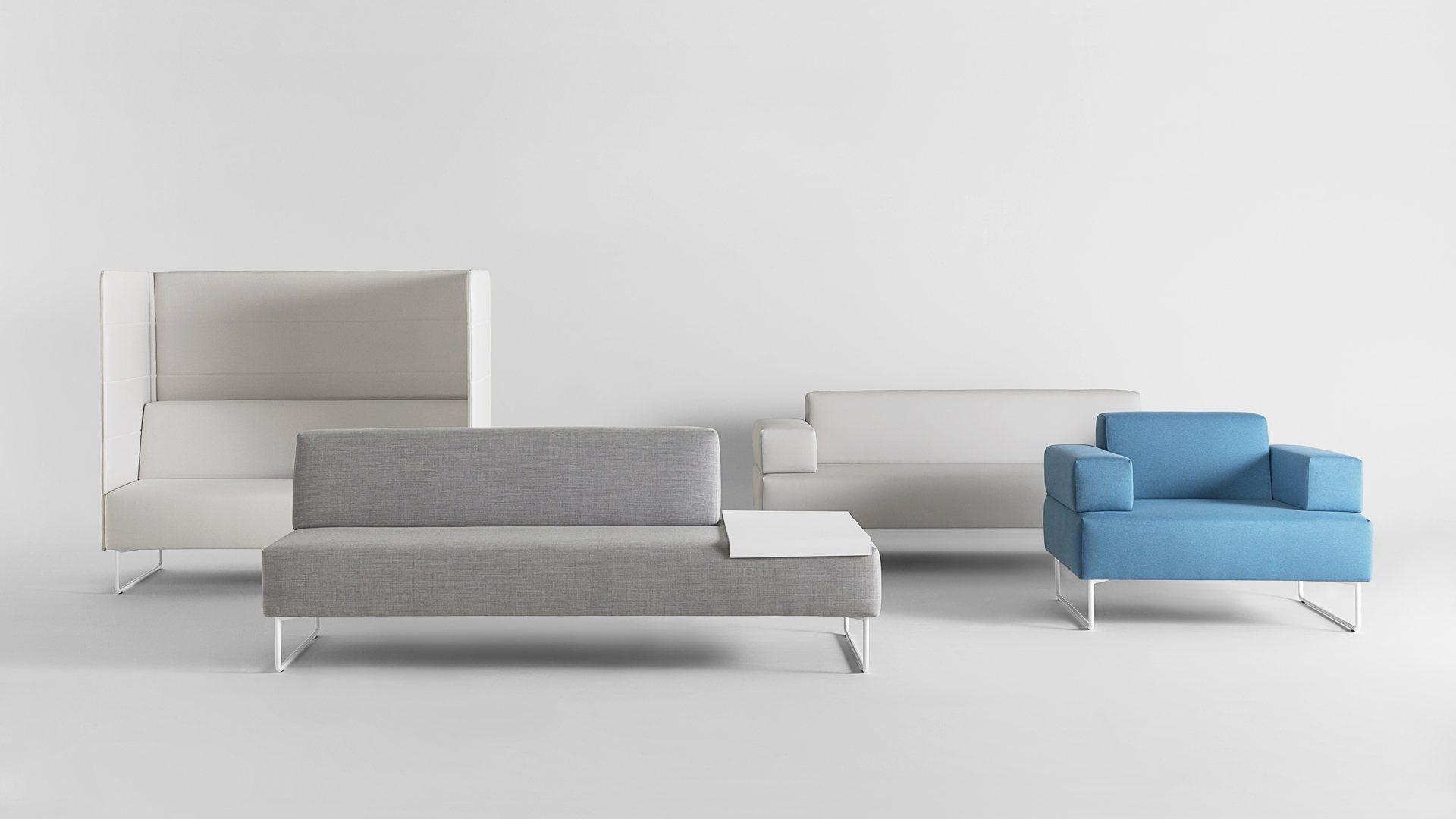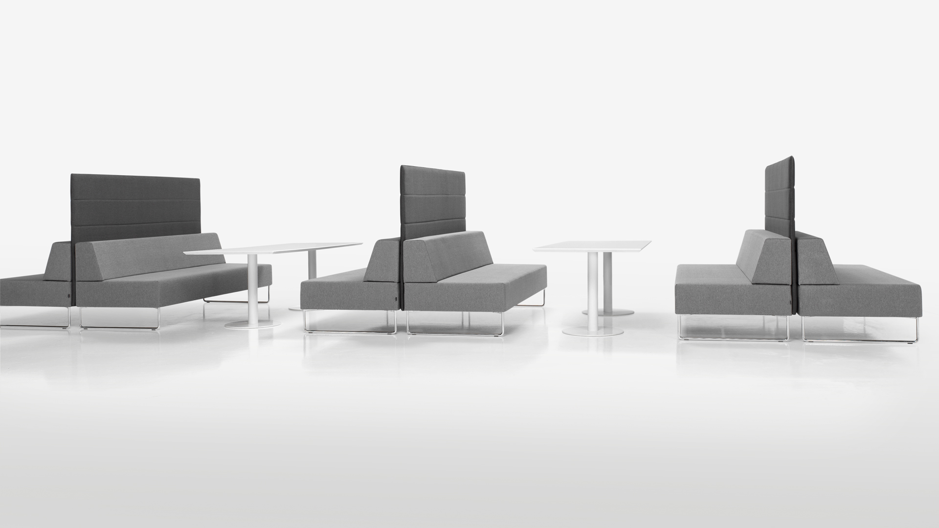 El sistema modular de asientos TETRIS, se concibe como un juego de piezas geomé- tricas tapizadas, donde se combinan diferentes asientos, respaldos, brazos, paneles y mesas auxiliares que pueden unirse para crear infinitas configuraciones. De este modo las zonas de bienvenida, recepción y descanso se pueden convertir en zonas productivas de intercambio de ideas, reuniones informales o simplemente de relax. Su estética pura, amable y atemporal se integra perfectamente en todo tipo de estilos y contextos. Los sofás se pueden tapizar con todas las pieles o tejidos del muestrario INCLASS así como con otros tejidos suministrados o especificados por el cliente. La modularidad del concepto TETRIS permite incluso combinar diferentes tapicerías y colores en el mismo sofá. Las estructuras metálicas se acaban en cromo o con pintura de poliéster en color blanco o negro.